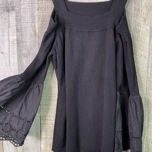 INC International Concepts Small Black Cold Shoulder Bell Sleeve Sweater