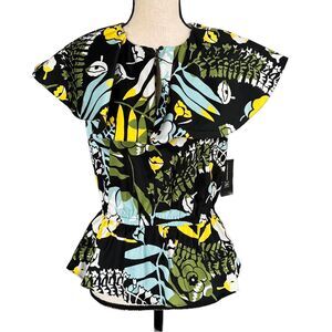 INC International Concepts Small Peplum Capelet Top Floral Elastic Waist Keyhole