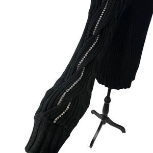 INC International Concepts Small Sweater Cowl Neck Rhinestones Long Sleeve Black