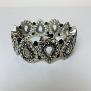 INC International Concepts Stretch Bracelet Silver Tone With Rhinestones