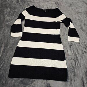 INC International Concepts Striped Sweater Dress Black White Knit Medium