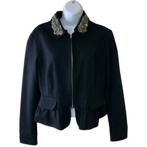 INC International Concepts Suit Jacket Blazer Womens L Full Zip Beaded Formal