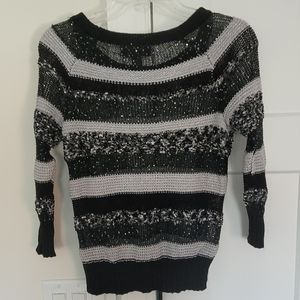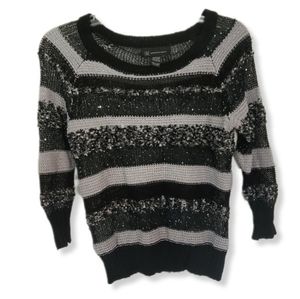 INC International Concepts Sweater Black White Stripe Sequin Long Sleeve…