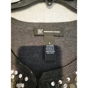 INC International Concepts Sweater Embellished Sparkle Gray Silver Lightweight