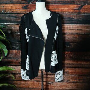 INC International Concepts Sweater L Black Sheer Lace Asymmetrical Zip
