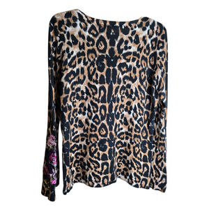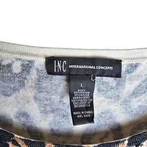 INC International Concepts Sweater Womens Large Leopard Print Embroidered Floral