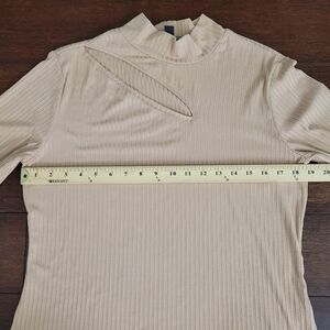 INC International Concepts Tan Ribbed Mock Neck Long Sleeve Cut Out Top Size L