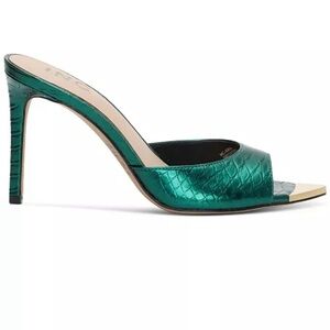 Chic teal heels with open-toe design. Perfect for stylish outings.
