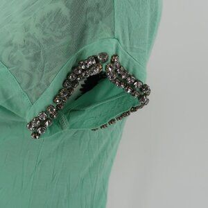 INC International Concepts Teal Semi Sheer T-Shirt Rhinestone Detail Sleeves XS