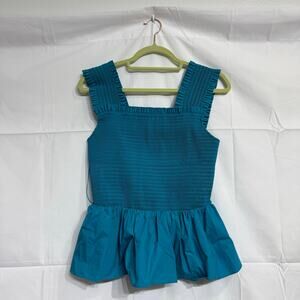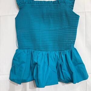 INC International Concepts Teal Smocked Peplum Top Sz M NWT