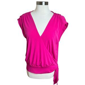 INC International Concepts Top Size Medium Pink Surplice Tie Waist Cap Sleeves