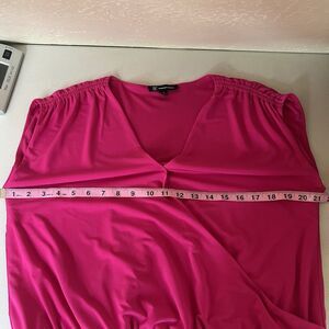 Hot Pink Cap Sleeves With Ruching. Surplice V Neck. Tie Waist. Belted.