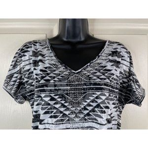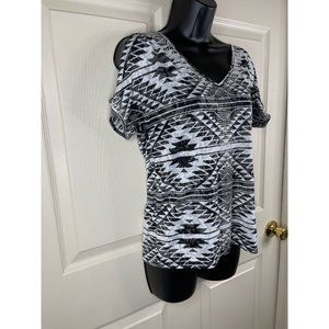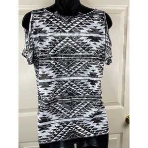 INC International Concepts Top Womens Short Slit Sleeves White Black Size Small