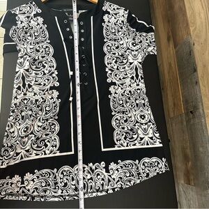 INC International Concepts Top Womens Small Black White Scroll Lace Long Sleeves