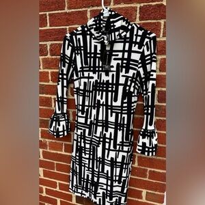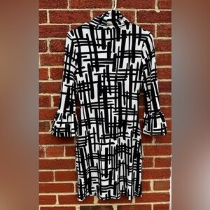 New with tags INC hatch mark dress with turtleneck and puffed sleeve detail.