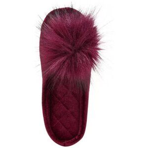 INC International Concepts Velvet Pom Pom Slide Slippers Burgundy Medium 7-8