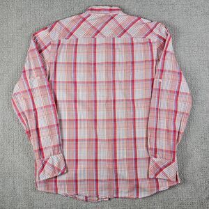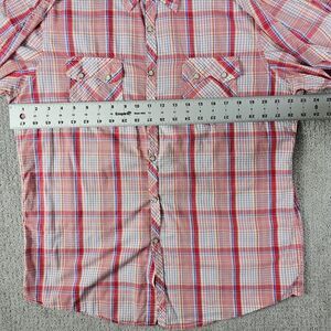 INC International Concepts Western Shirt Men's L Red Plaid Pearl Snap Rodeo