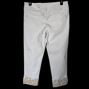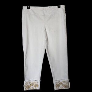 INC International Concepts White Capri Pants Size 12 Floral Bling Leg Pull-on