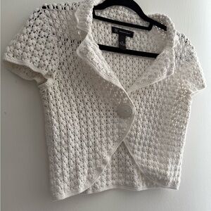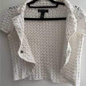 INC International Concepts White Crochet Button-Front Short Sleeve Cardigan Shrug Size Medium