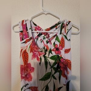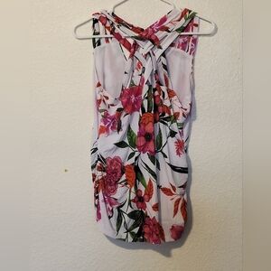 INC International Concepts White Floral Crisscross Back Tank Top Size Medium