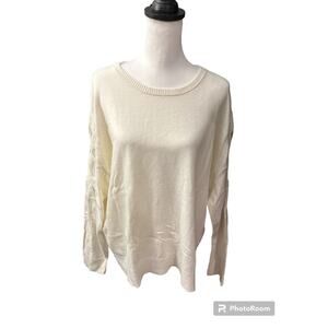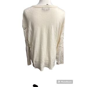 Gently Used in Excellent condition INC Internal Concepts sweater in size Large. White in color with Cut outs on Sleeve and sequins. 32% Cotton, 28% Wool, 27% Nylon 11% Rayon, 2% Cashmere.