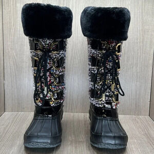 INC International Concepts Duck Boots Women 6M Lorinah Tweed Faux Fur Lined Black