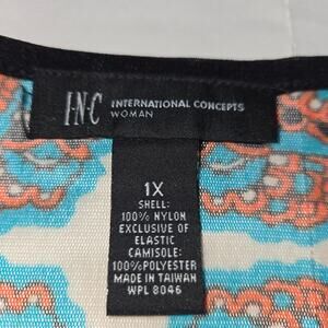 INC International Concepts Woman 1X Top Flowy Stretch Art to Wear Boho Hippie. Has an attached Cami tank with sheer overlay. In good, pre-owned condition with no noted rips, tears or stains. Measurements in description and in pictures with ruler. Please see pictures as they are considered part of the description.