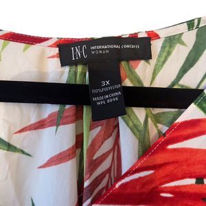 INC International Concepts Womans Plus Size 3X Cold Shoulder Tropical Print Top