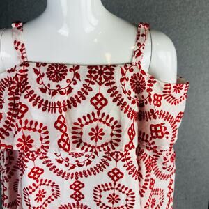 INC International Concepts Womans Sz Small Blouse Embroidered Long Sleeve Red