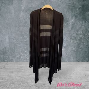 INC International Concepts Women Black Open Cascading Wrap Cardigan Jacket Sz L