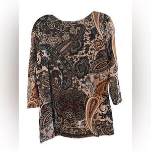 INC International Concepts Women Sequin Pasley Top Brown, Black & Tan