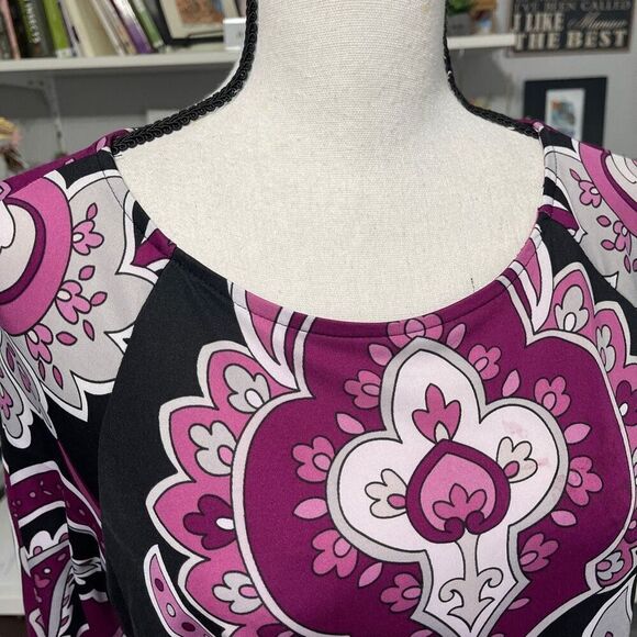 INC International Concepts Women Petite Damask Tapestry Mini Dress Purple Medium