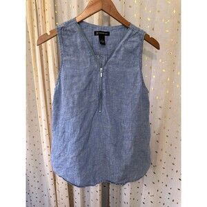 INC International Concepts Women's 100% Linen Zipper Neck Sleeveless Blouse 6
