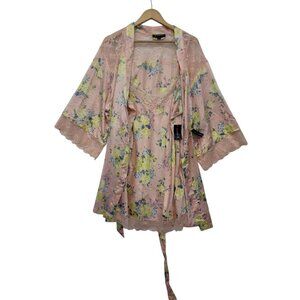 INC International Concepts Women's 2pc Lace-Trim Floral Robe/ Nightie Floral XL