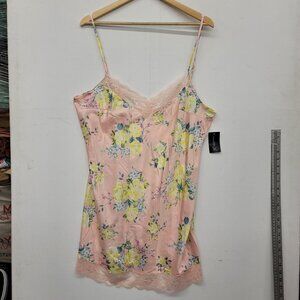 The INC International Concepts Women's 2pc Lace-Trim Floral Robe/ Nightie in XL size is a stylish and comfortable sleep ensemble for women. The sleeveless robe features a floral pattern in a soft pink color, made from polyester fabric with lace detailing. Perfect for the spring, summer, and fall seasons, this robe is a versatile piece that can be worn for relaxing at home or special occasions. The brand's reputation for quality and trendy design ensures a flattering fit and a lovely addition to any woman's wardrobe.