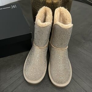 A fun fusion of sparkly stones outside and toasty faux-fur inside, Charter Club's Adrie booties are bound to become an all-around fave.