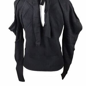 INC International Concepts Womens Black Cold Shoulder Bow Back Sweater Small NWT