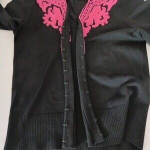 INC International Concepts Women's Black/Pink Botanica Cardigan Size Small