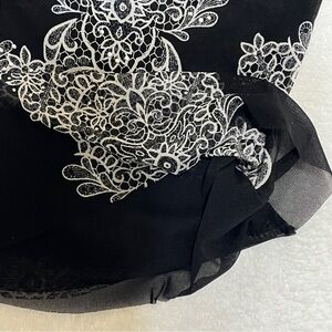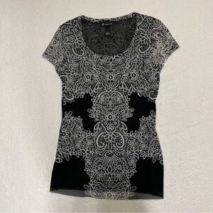 INC. International Concepts Women's Blouse Top Sheer Rhinestones Embellishments Black Print Size Medium