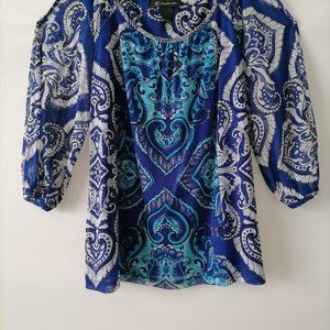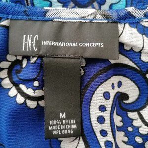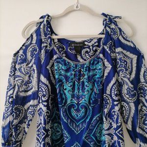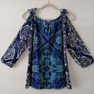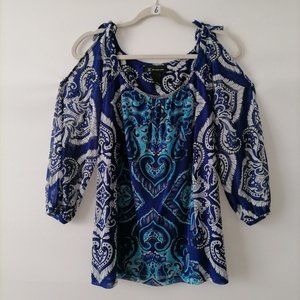 INC International Concepts Womens Blue Cold Shoulder Paisley Boho Top Size M