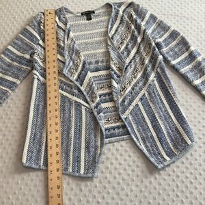 INC International Concepts Women's Blue White Striped Open Front Cardigan