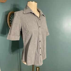 INC International Concepts Womens Button Front Short Sleeve Blouse Gray Size 8
