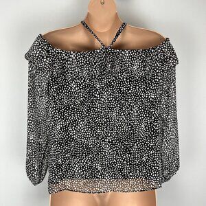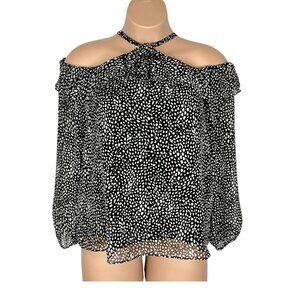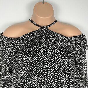 I.N.C. International Concepts Black White Printed Cold-Shoulder Rosette Blouse