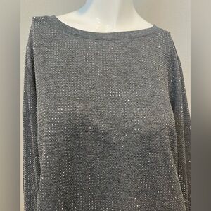 INC International Concepts Women”s Glitz DC LS Sparkle Grey Top Sweater Size L