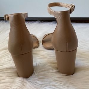 * Square-toe sandals with adjustable buckle closure at ankle-strap