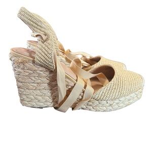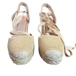 4" espadrille wedge heel; 1" platform