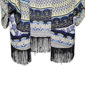 INC International Concepts Women's Multicolor Fringe Hem Kimono Cover-Up Size L