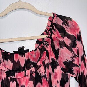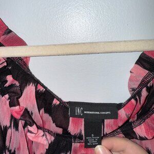INC International Concepts Womens Pink & Black Abstract Print Top Size S