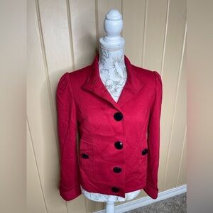 INC International Concepts Women's Red Blazer Puff Sleeve Black Buttons Small.