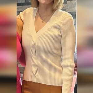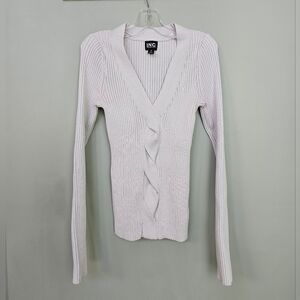 I.N.C. International Concepts Women's Ribbed Cable Knit V-Neck Sweater XS Ivory